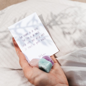 Deze gladde edelstenen zijn speciaal samengesteld voor rouw. Deze edelstenen kalmeren en bevatten de eigenschappen die ons kracht en steun geven. De stenen komen met bijpassend gedicht en cadeauzakje.