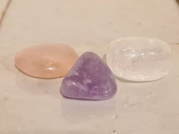 Deze edelsteenset Innerlijke rust is speciaal samengesteld om innerlijke rust te bevorderen en de geest te kalmeren. De set bestaat uit drie prachtige stenen: Amethist, Bergkristal en Rozenkwarts.