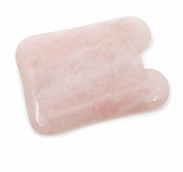 Guasha schraper van de edelsteen Rozenkwarts. Gebruik deze door over je huid te schrapen en zo je lichaam te helpen met het afvoeren van afvalstoffen.