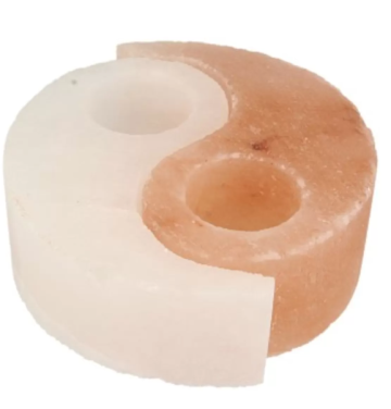 Yin Yang Waxinelichthouder gemaakt van Himalaya zoutsteen. Twee losse helften. Prachtig in het interieur.