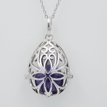 De zilverkleurige eivormige ketting met amethist is het perfecte cadeau voor jezelf of een dierbare die op zoek is naar innerlijke rust, spirituele groei en balans. Het is een reminder om je te omringen met positieve energie en harmonie.